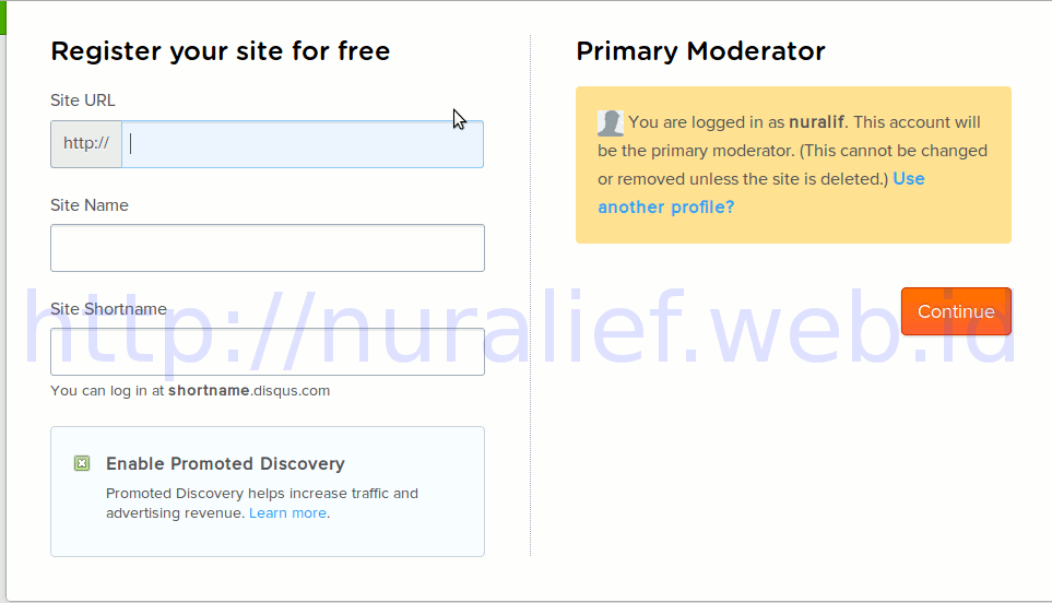 Setelah proses instalasi selesai, langsung melakukan pendaftaran pada web disqus.